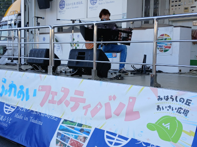 今日は、みはらしの丘あいさい広場で開催される「JAふれあいフェスティバル」の昔の音楽祭コーナーに参加させてもらいました。